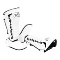 The foot and shin protector are attached with velcro so that their length may be adjusted to further personalize the fit. The foot protector can be adjusted (up/down and right/left) up to 180 degrees, providing superior movement and comfort. In addition, the foot protector may be removed and the shin protector worn on it’s own.